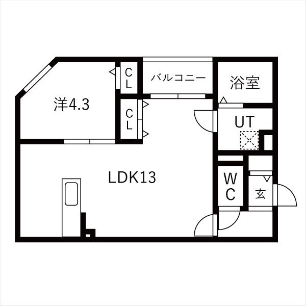 | 間取り詳細 | LDK 13畳 、 洋室 4.3畳 |