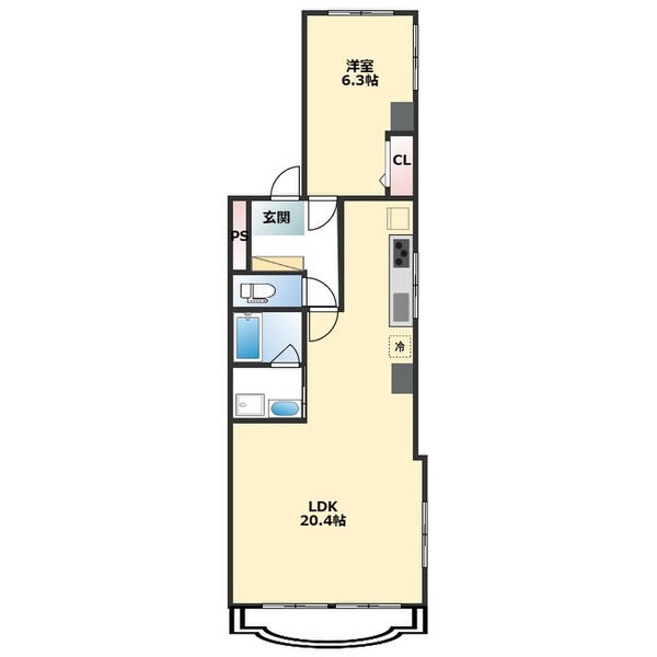 | 間取り詳細 | LDK 20.4畳 、 洋室 6.3畳 |