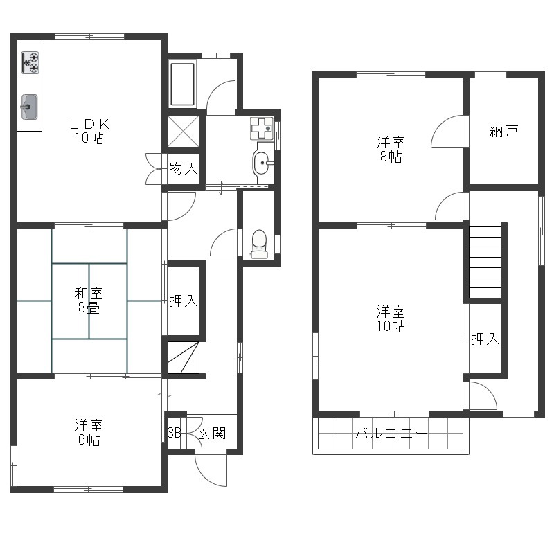 | 間取り詳細 | LDK 10畳 、 洋室 10畳 、 洋室 8畳 、 洋室 6畳 、 和室 8畳 |