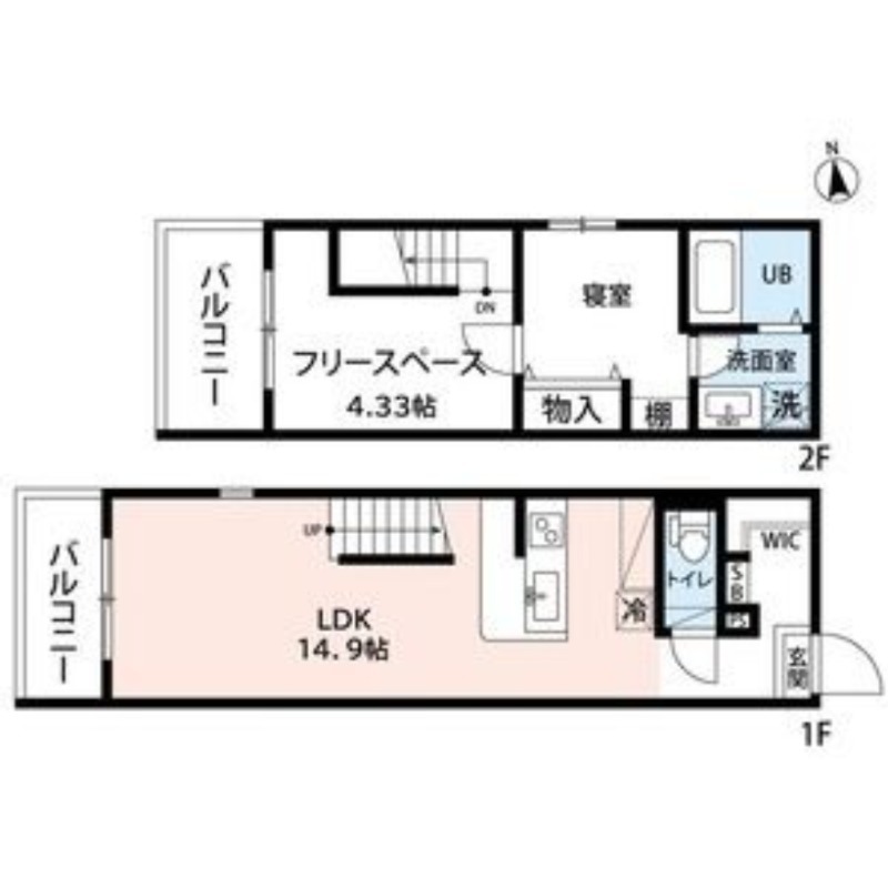 | 間取り詳細 | LDK 14.9畳 、 洋室 4.33畳 、 洋室 畳 |