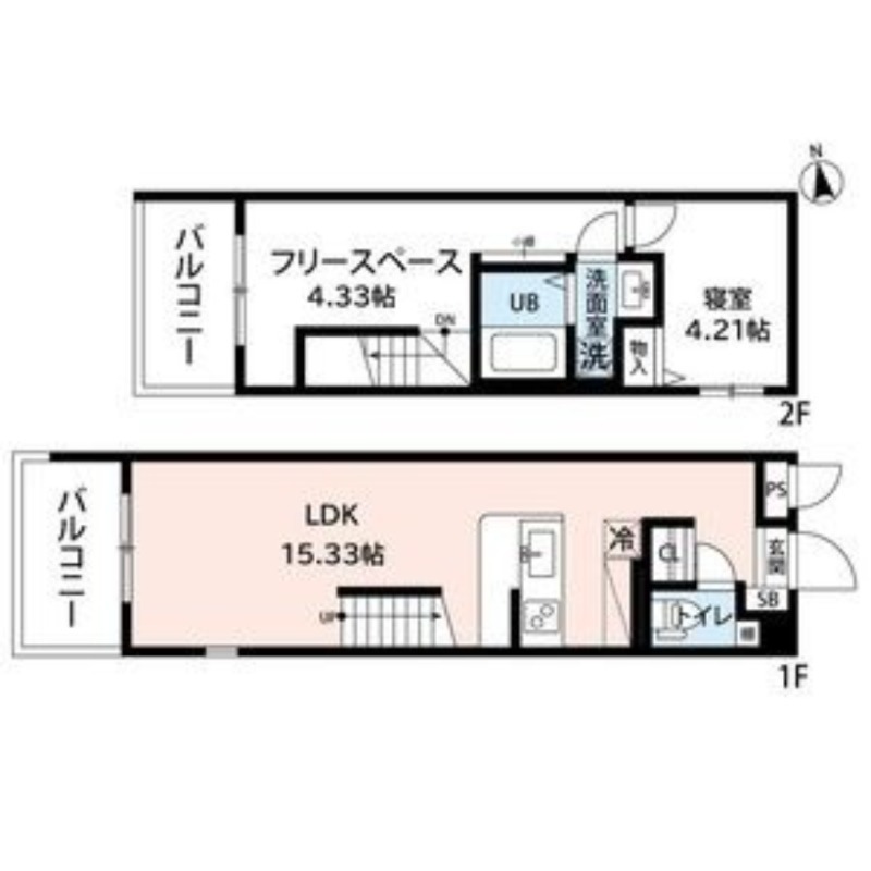 | 間取り詳細 | LDK 15.33畳 、 洋室 4.33畳 、 洋室 4.21畳 |