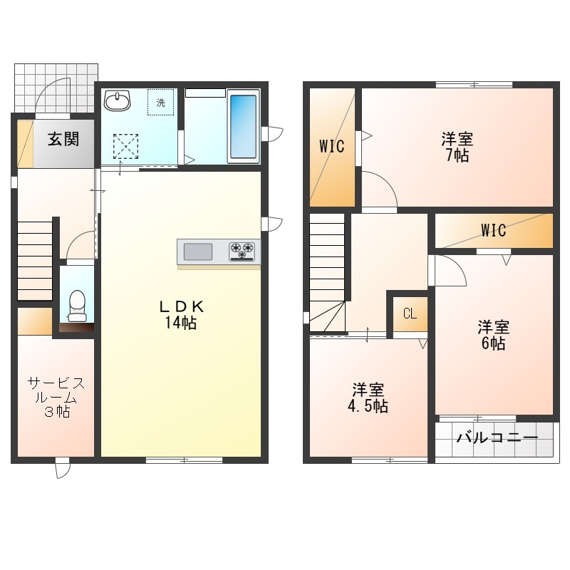 | 間取り詳細 | LDK 14畳 、 S 3畳 、 洋室 7畳 、 洋室 6畳 、 洋室 4.5畳 |