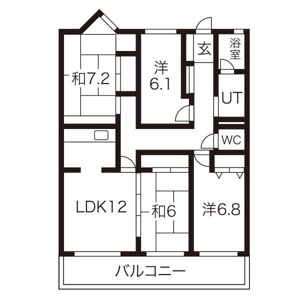 | 間取り詳細 | LDK 12畳 、 和室 7.2畳 、 洋室 6.8畳 、 洋室 6.1畳 、 和室 6畳 |