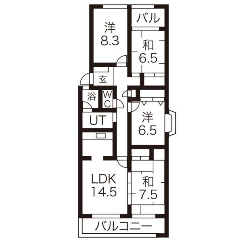 | 間取り詳細 | LDK 14.5畳 、 和室 6.5畳 、 洋室 8.3畳 、 洋室 6.5畳 、 和室 7.5畳 |
