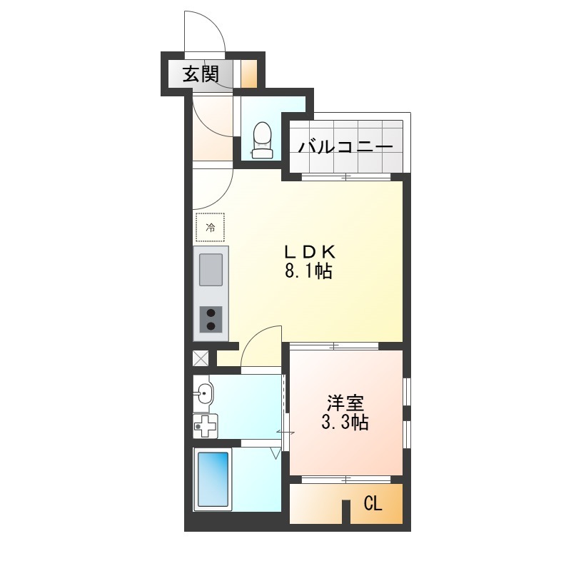 | 間取り詳細 | LDK 8.1畳 、 洋室 3.3畳 |