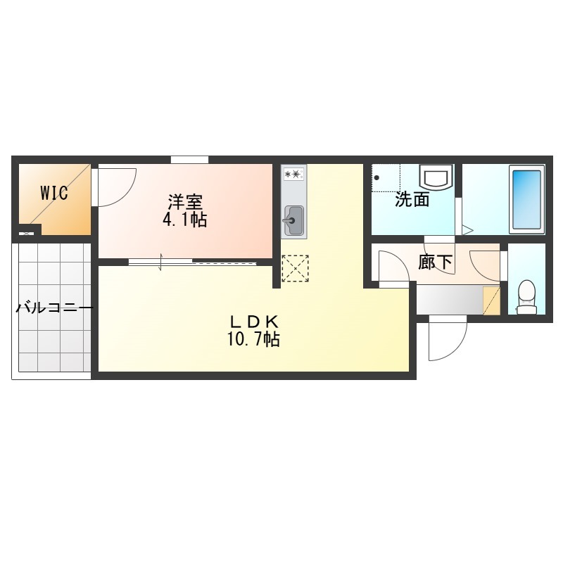 | 間取り詳細 | LDK 10.7畳 、 洋室 4.1畳 |