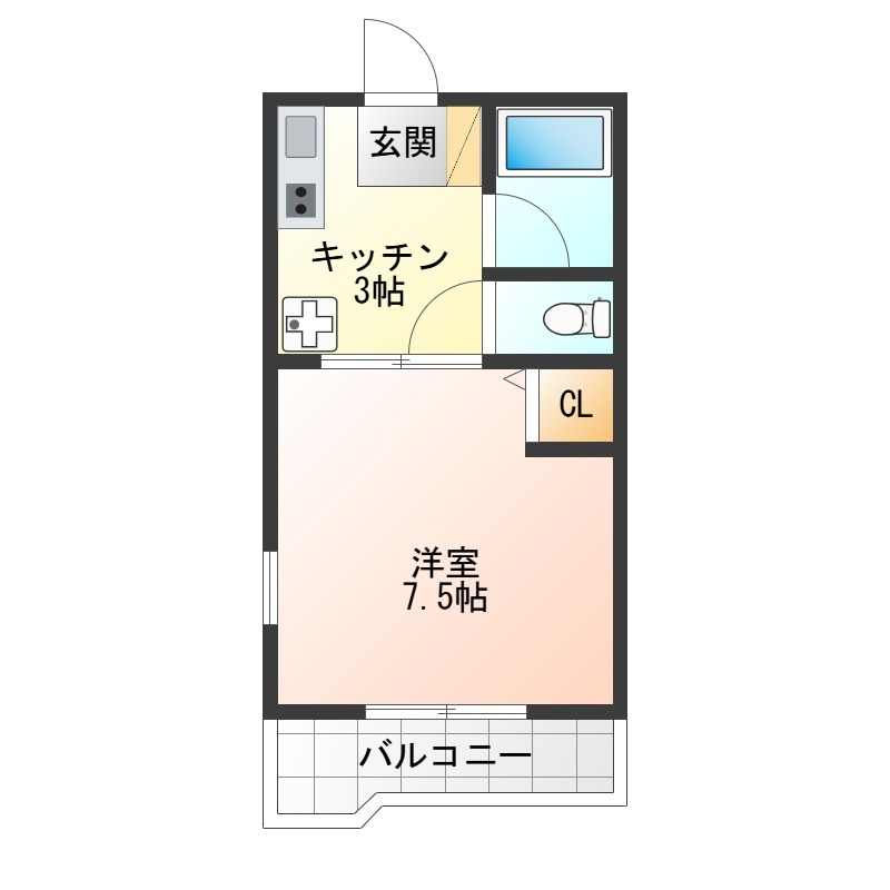 | 間取り詳細 | 洋室 7.5畳 、 K 3畳 |