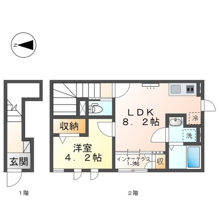 | 間取り詳細 | LDK 8.2畳 、 洋室 4.2畳 |