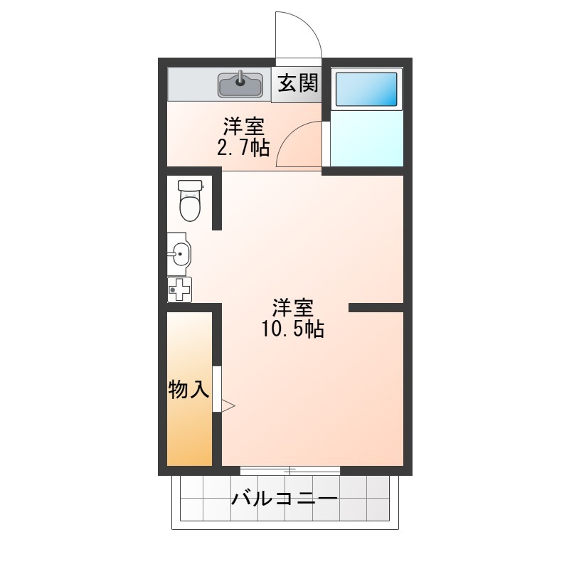 | 1K | 洋室 10.5畳 | 26.42㎡ |