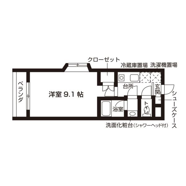 | 1K | 洋室 9.1畳 | 25.63㎡ |