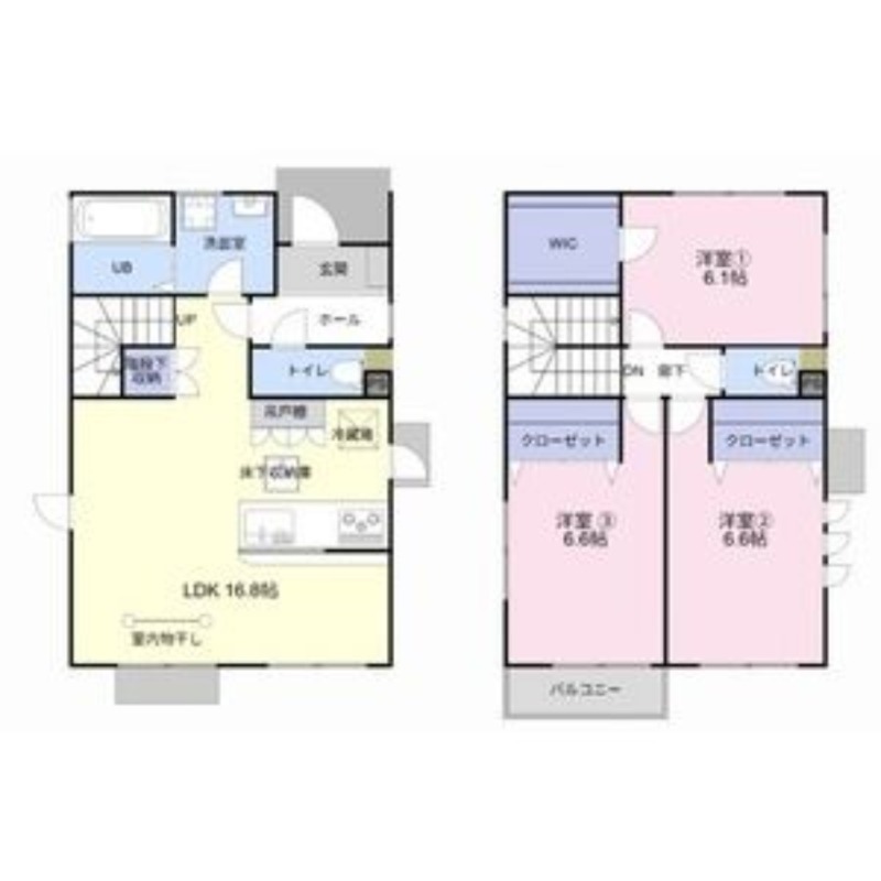 | 間取り詳細 | LDK 16.8畳 、 洋室 6.6畳 、 洋室 6.6畳 、 洋室 6.1畳 |