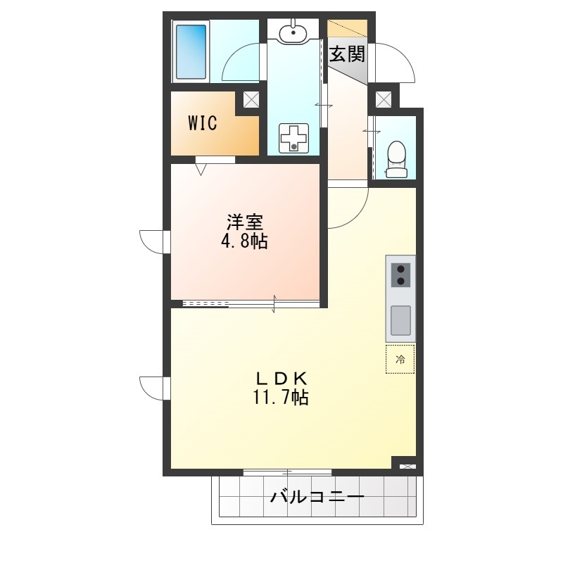 | 間取り詳細 | LDK 11.7畳 、 洋室 4.8畳 |