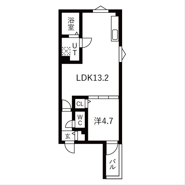 | 間取り詳細 | LDK 13.2畳 、 洋室 4.7畳 |