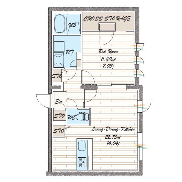 | 間取り詳細 | LDK 14.04畳 、 洋室 7.03畳 |