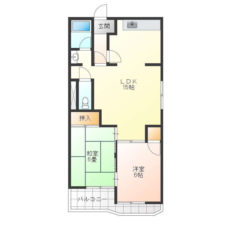 | 間取り詳細 | LDK 15畳 、 洋室 6畳 、 和室 6畳 |