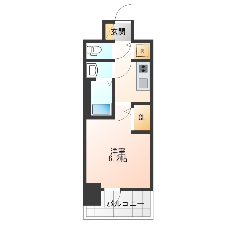 | 1K | 洋室 6.2畳 | 22.04㎡ |
