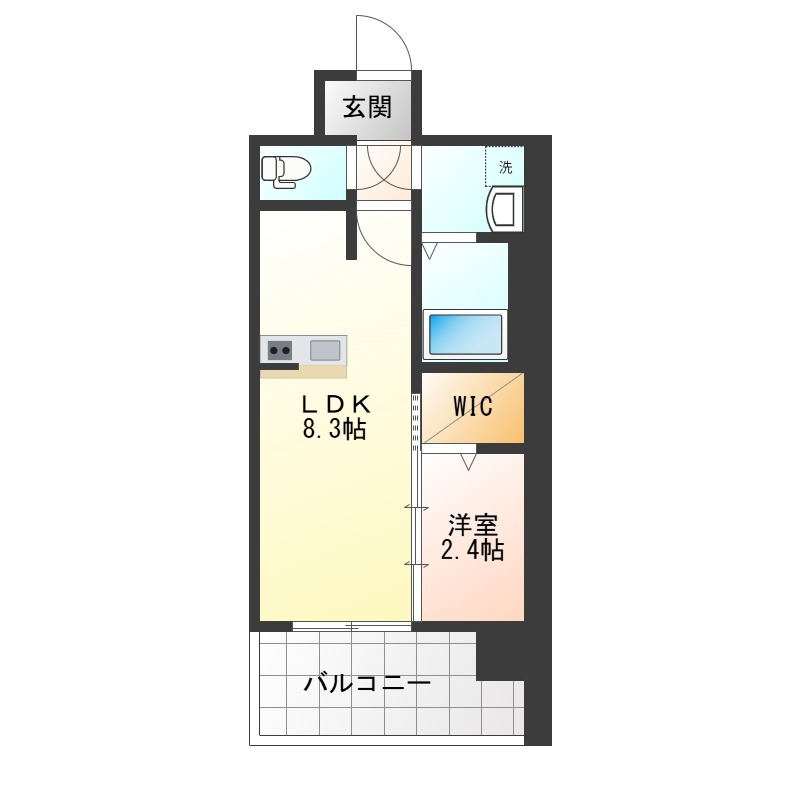 | 間取り詳細 | LDK 8.3畳 、 洋室 2.4畳 |