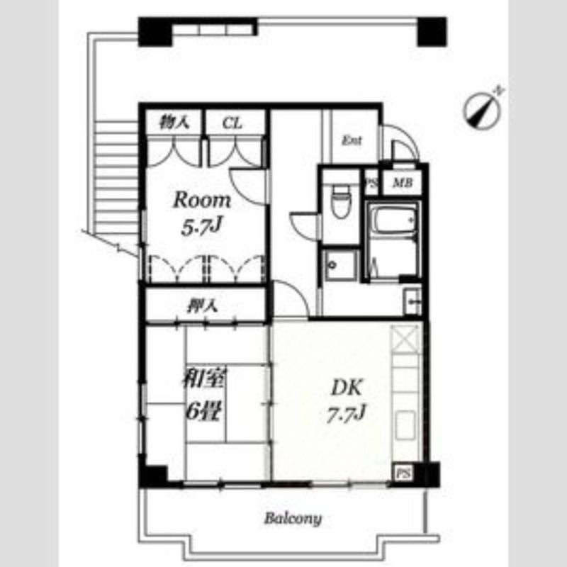 | 間取り詳細 | DK 7.7畳 、 洋室 5.7畳 、 和室 6畳 |