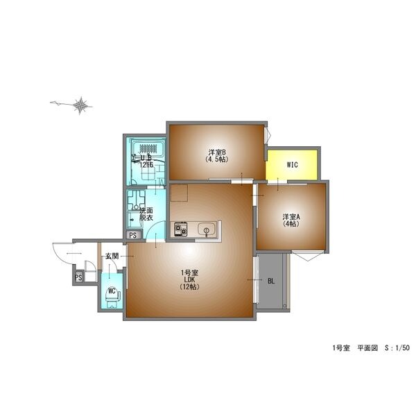 | 間取り詳細 | LDK 12畳 、 洋室 4.5畳 、 和室 4畳 |