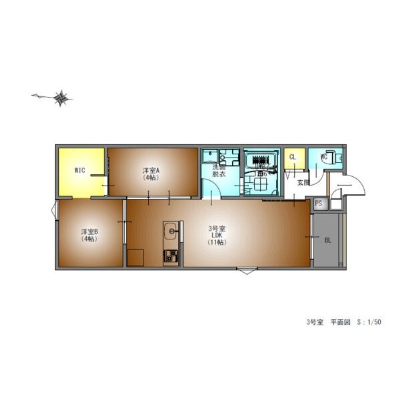 | 間取り詳細 | LDK 11畳 、 洋室 4畳 、 洋室 4畳 |