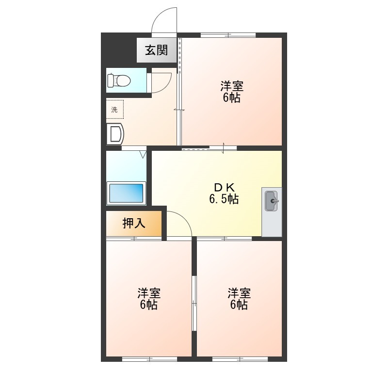 | 間取り詳細 | DK 6.5畳 、 洋室 6畳 、 洋室 6畳 、 洋室 6畳 |