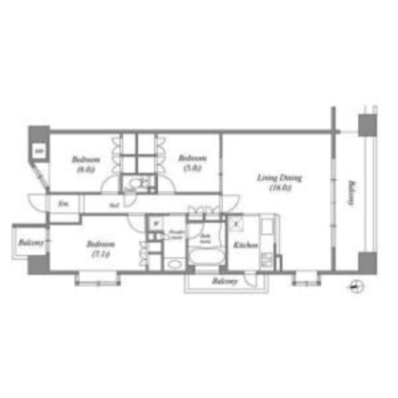 | 間取り詳細 | LDK 16畳 、 洋室 7.1畳 、 洋室 6畳 、 洋室 5畳 |