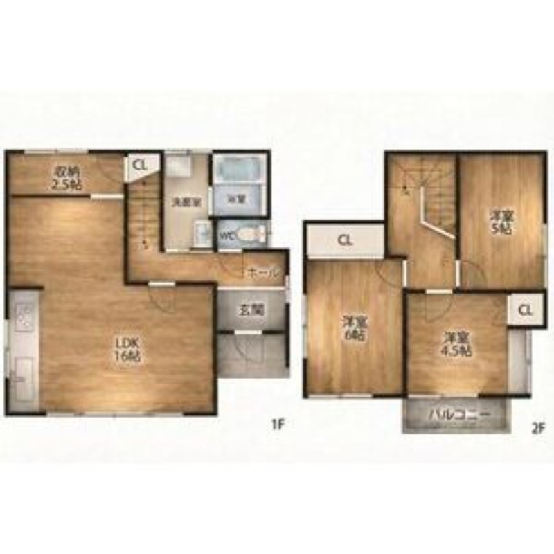| 間取り詳細 | LDK 16畳 、 洋室 6畳 、 洋室 5畳 、 洋室 4.5畳 |