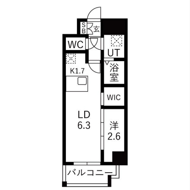 | 間取り詳細 | LD 6.3畳 、 K 1.7畳 、 洋室 2.6畳 |