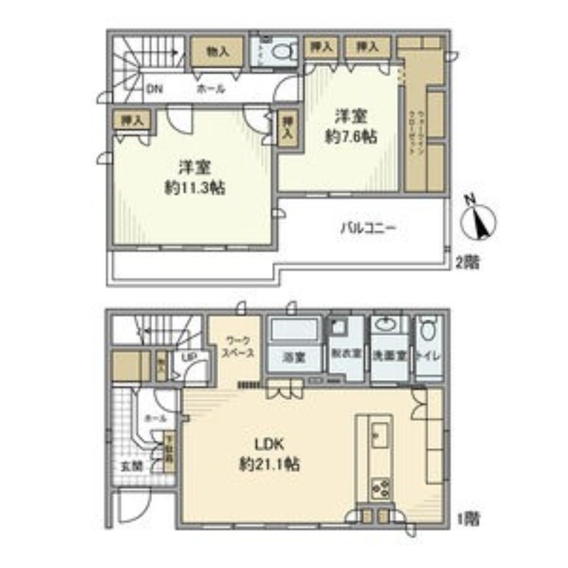 | 間取り詳細 | LDK 21.1畳 、 洋室 11.3畳 、 洋室 7.8畳 |
