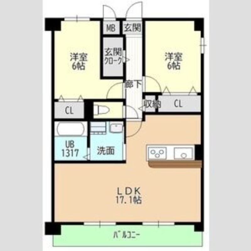 | 間取り詳細 | LDK 17.1畳 、 洋室 6畳 、 洋室 6畳 |