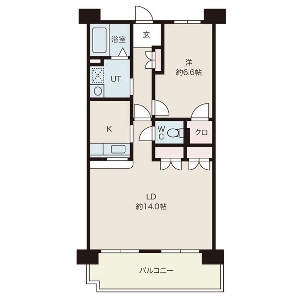 | 間取り詳細 | LDK 14畳 、 洋室 6.6畳 |