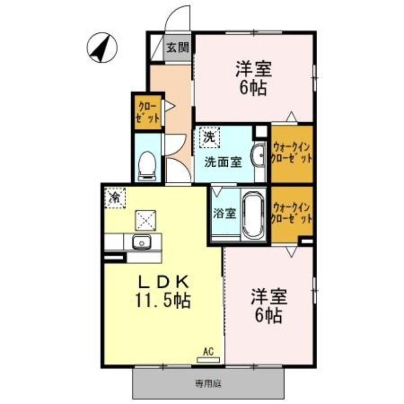 | 間取り詳細 | LDK 11.5畳 、 洋室 6畳 、 洋室 6畳 |