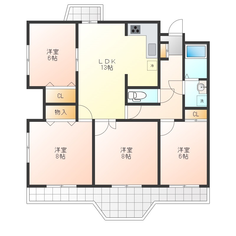 | 間取り詳細 | LDK 10畳 、 洋室 6畳 、 洋室 6畳 、 洋室 8畳 、 洋室 8畳 |