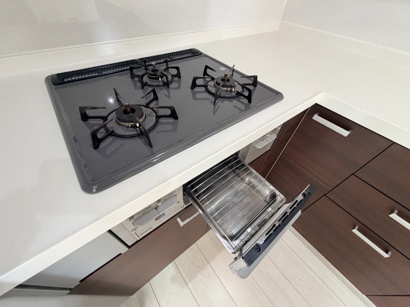 | 設備 | ガス(都市ガス)、管理形態(巡回)、インターホン(TVモニター付き)、専用ゴミ置き場(あり)、駐輪場、日当り良好、2面採光、眺望良好、南向き部屋数(3室)、角部屋、通風良好、フローリング、全居室フローリング、ベランダ・バルコニー、2面バルコニー、クローゼット、押入れ、下駄箱、バス・トイレ別(別室)、シャワー、追い焚き、オートバス、脱衣所、給湯、温水洗浄便座、洗面台、洗面所独立、シャンプードレッサー、三面鏡付き洗面化粧台、洗面所にドア、洗濯機置き場(室内)、コンロ設置済、コンロ口数(3)、コンロ種類(都市ガス)、グリル、システムキッチン、L字型キッチン | ||