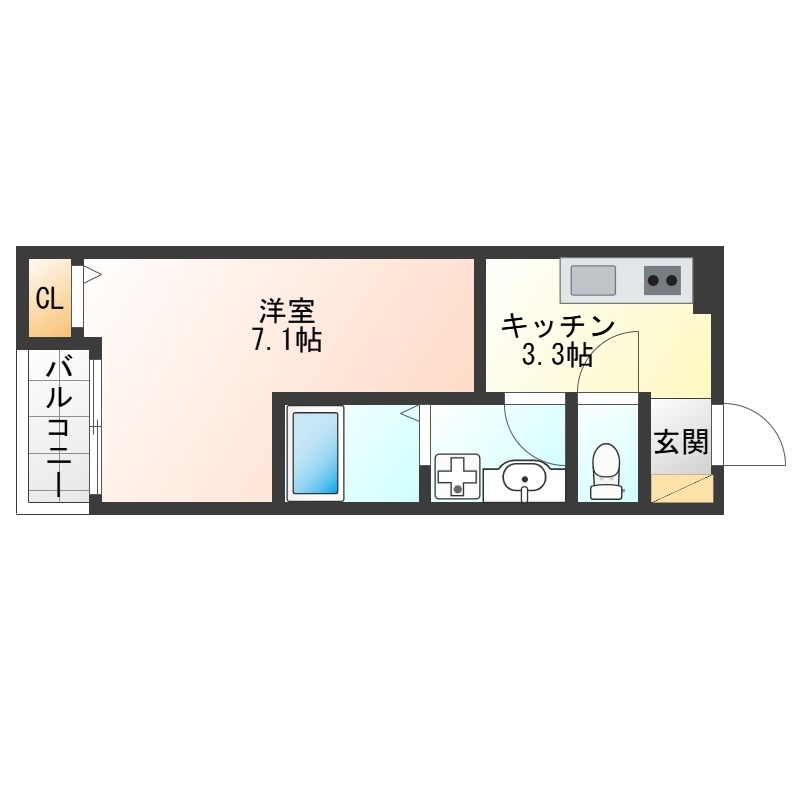 | 1K | 洋室 7.1畳 | 25.5㎡ |