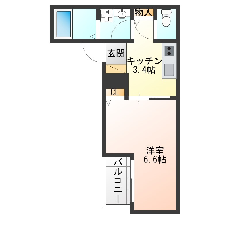 | 1K | 洋室 6.6畳 | 25.06㎡ |