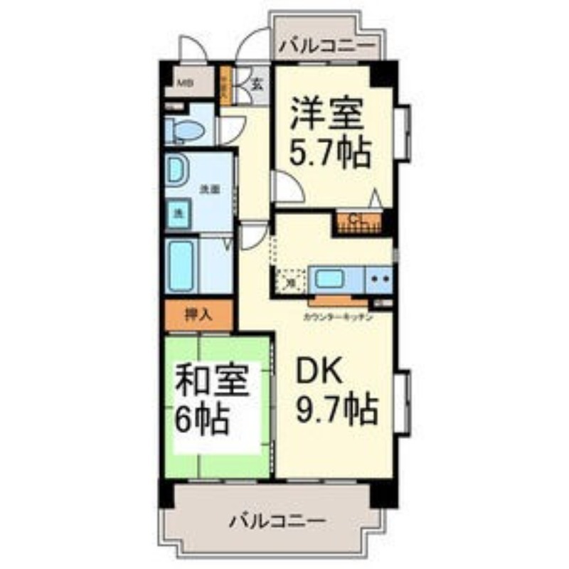| 間取り詳細 | DK 9.7畳 、 和室 6畳 、 洋室 5.7畳 |