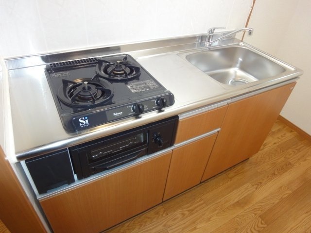 | 設備 | ガス(プロパン)、インターホン(TVモニター付き)、防犯シャッター、専用ゴミ置き場(あり)、駐輪場、フローリング、照明器具、ベランダ・バルコニー、クローゼット、下駄箱、バス・トイレ別(別室)、シャワー、追い焚き、浴室乾燥機、温水洗浄便座、洗面台、シャンプードレッサー、洗濯機置き場(室内)、コンロ口数(2)、コンロ種類(プロパン)、グリル、システムキッチン、エアコン | ||