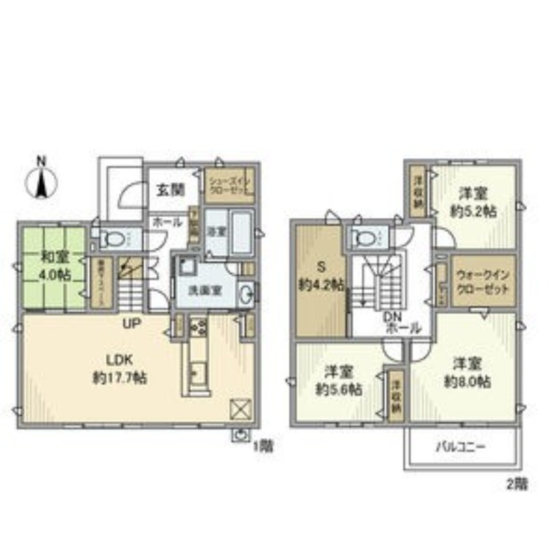 | 間取り詳細 | LDK 17.7畳 、 和室 4畳 、 洋室 5.2畳 、 洋室 5.6畳 、 洋室 8畳 、 S 4.2畳 |