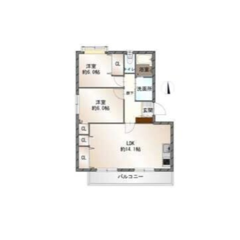 | 間取り詳細 | 洋室 6畳 、 洋室 6畳 、 LDK 14.1畳 |
