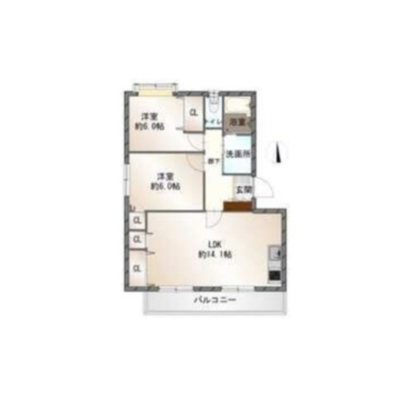 | 間取り詳細 | 洋室 6畳 、 洋室 6畳 、 LDK 14.1畳 |