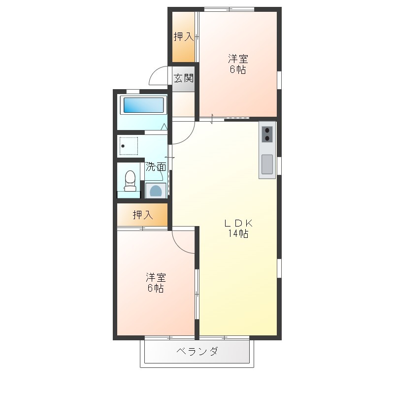 | 間取り詳細 | LDK 14畳 、 洋室 6畳 、 洋室 6畳 |