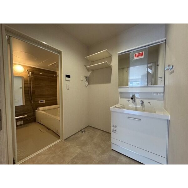 新築、駐車場有、角部屋、フローリング、バストイレ別、専用庭、追い焚き、浴室乾燥機、温水洗浄便座、シャンプードレッサー