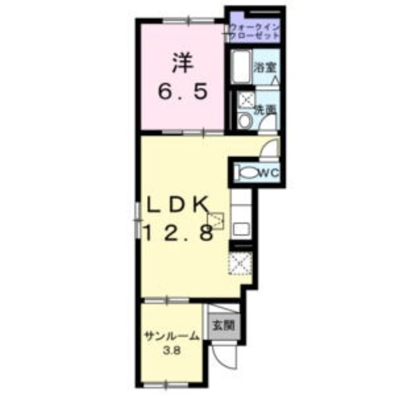 | 間取り詳細 | LDK 12.8畳 、 洋室 6.5畳 |