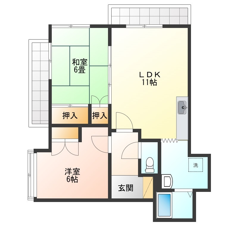 | 間取り詳細 | 洋室 6畳 、 和室 6畳 、 LDK 11畳 |