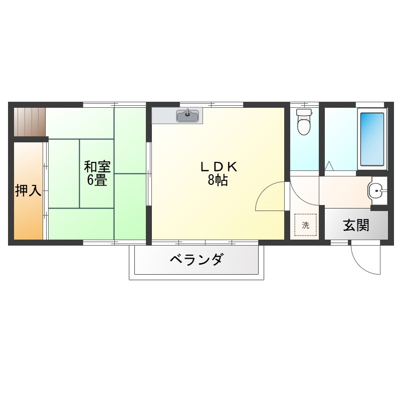 | 間取り詳細 | 和室 6畳 、 LDK 8畳 |