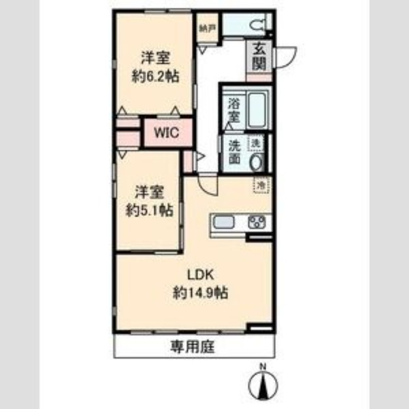 | 間取り詳細 | LDK 14.9畳 、 洋室 6.2畳 、 洋室 5.1畳 |
