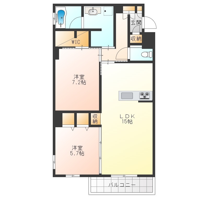 | 間取り詳細 | LDK 15畳 、 洋室 7.3畳 、 洋室 5.7畳 |