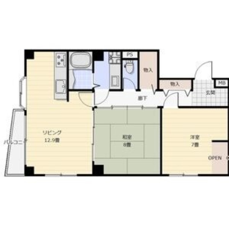 | 間取り詳細 | 洋室 7畳 、 和室 8畳 、 LDK 12.9畳 |
