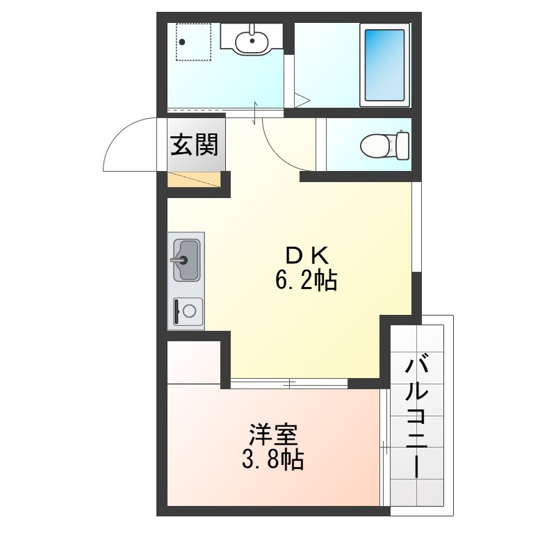 洋室 3.8畳 、 DK 6.2畳